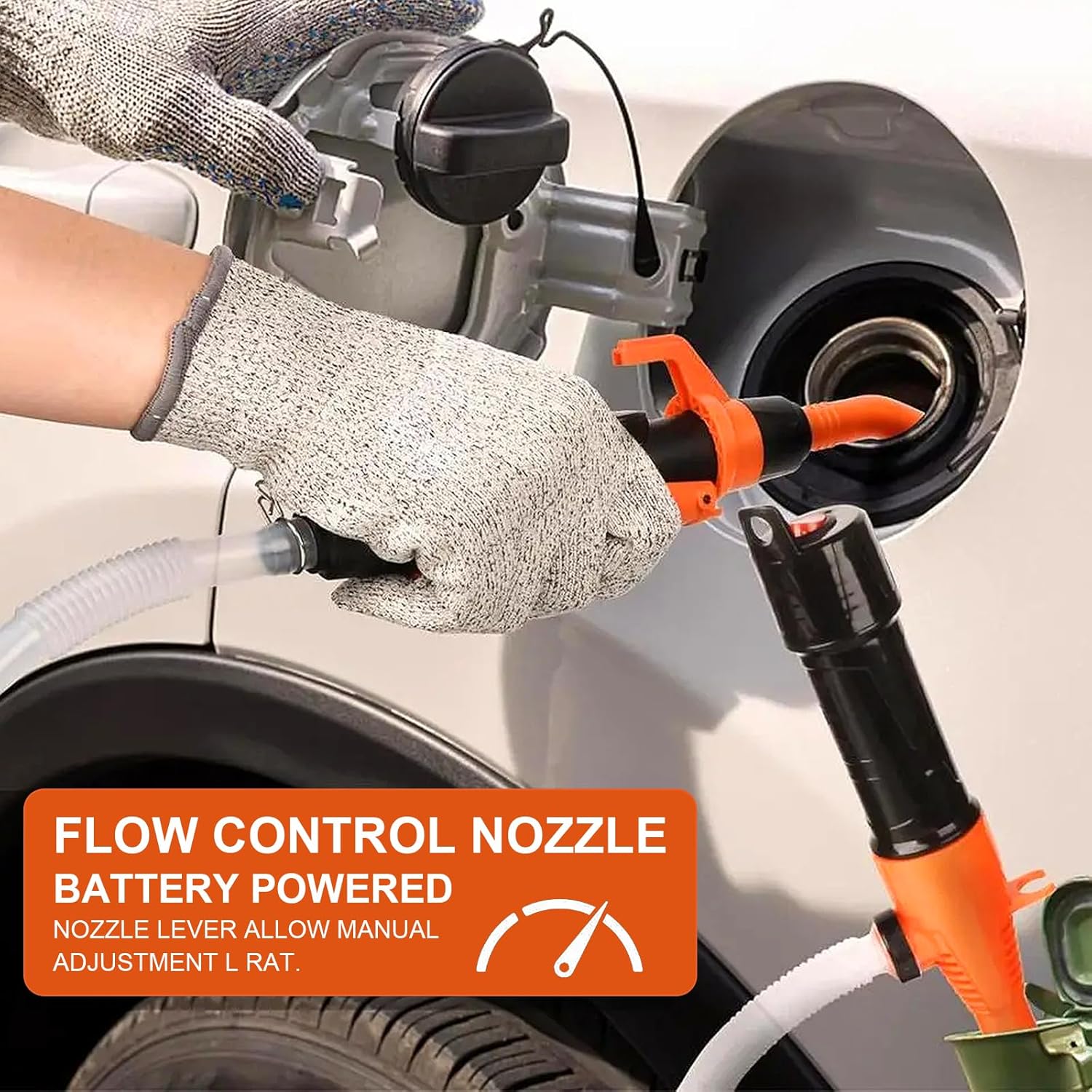 Adjustable nozzle with flow control: the flow control lever allows you to control the liquid release by adjusting the squeeze lever, or lock the lever to extend the refueling time